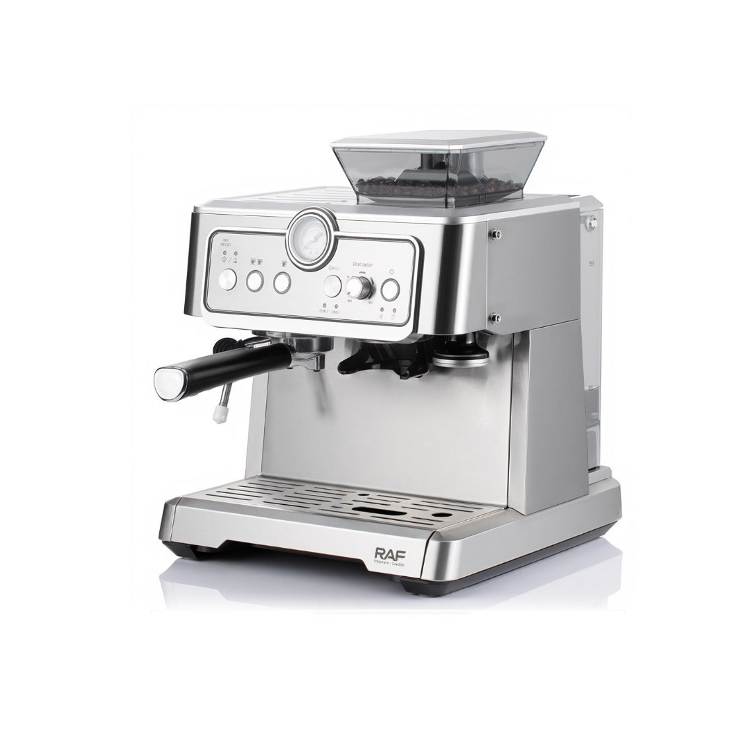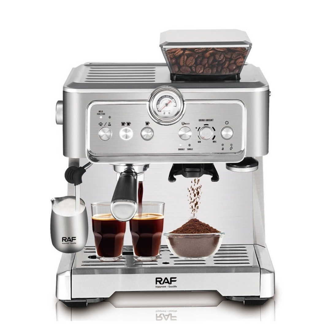 RAF Coffee Maker – 1350W Espresso Machine, 2.3L Large Capacity, Twin Brewing Cycle, Built-in Grinder, Milk Frother, Easy Clean, Professional Barista Coffee Machine for Home & Office