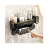 Wall Mounted Toothbrush Holders with Toothpaste Dispenser Wrewing 2 Cups Toothbrush Holder with Paper Towel Rack Bathroom Toothbrush Holder Set with 4 Brush Slots and 3 Cosmetic Organizers Black 2